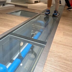 足元のスケルトン通路の下を流れるパイプを食い入るように見つめる姿が印象的でした。