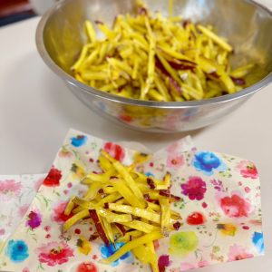 すぐにいただこう!となり、いただいた次の日、早めに来た児童2名とスタッフで、「いもけんぴ」づくり、スタート!