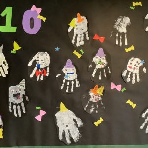 9月末につくった、10月のカレンダーは、みんなの手形でハロウィンお化けが勢ぞろい👻