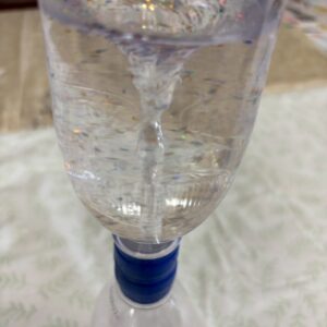 トルネードボトルは円を描くように回して水の流れを起こします。