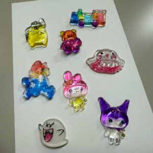 固めてあるレジンの裏側に、油性マジックで地の色を塗った後、表側は目や口の細かい部分を塗って完成★