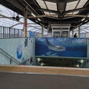 水族園に入る前から子どもたちのボルテージは最高潮。駅の装飾が、これから始まる冒険への期待感をぐっと盛り上げてくれました。