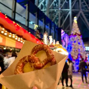 クリスマスマーケットの雰囲気を味わいながら、ごほうびのプレッツェル🥨をみんなで食べました☆