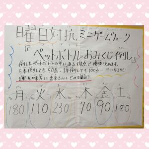 今回の種目は、その名もペットボトルおみくじ倒し!