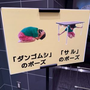 「こわい!」と言いながら、頭をおさえてダンゴムシのポーズで身を守りました。
